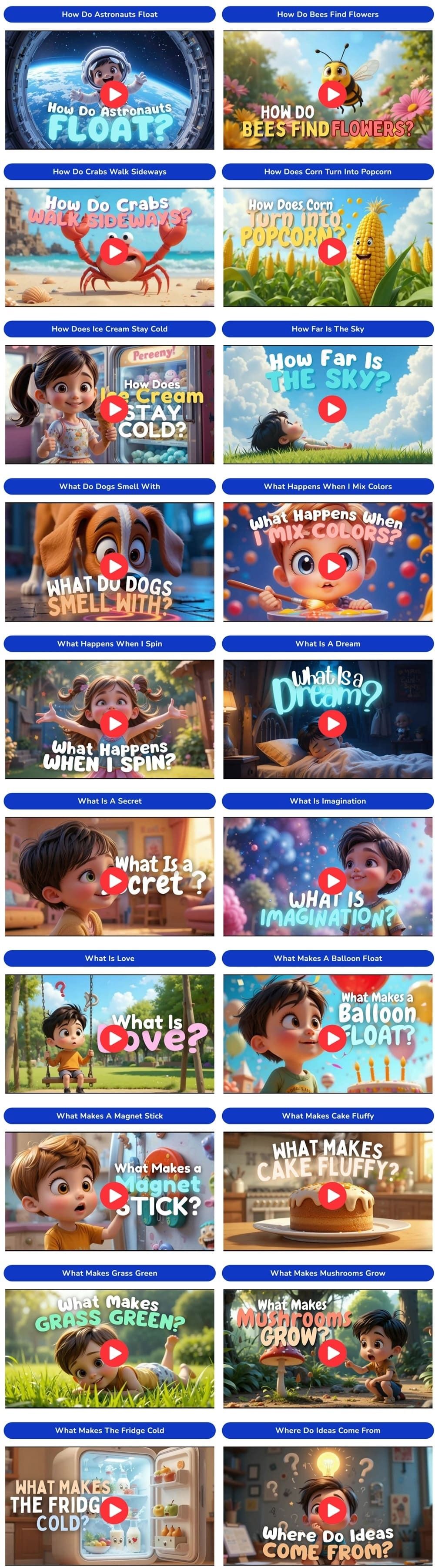 Each video is structured as a short educational story that explains a concept in a way kids can easily understand.
