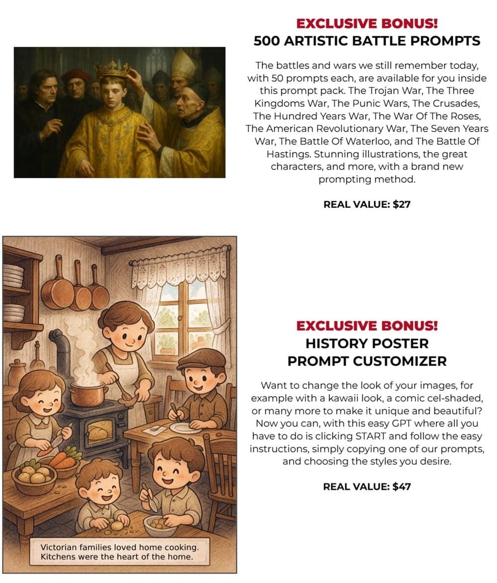 This is exactly the problem Children’s History Empire aims to solve. Created by Alessandro Zamboni and Roxanne Beharie, this product promises a complete, ready-made system for generating stunning, educational, age-appropriate history posters using AI — without spending hours researching, tweaking, or guessing what to type into your image-generation tool.